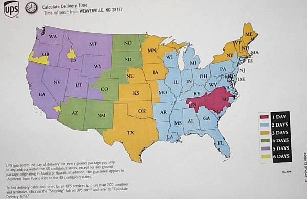 This shows days for delivery for UPS ground from Weaverville, NC.